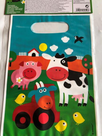 Slik/gavepose med bondegårdsmotiv 16,5 x 23 cm. 1 Pk. = 8 stk.