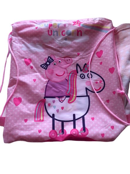 Pappa Gris strandtæppe inc. flot pose til opbevaring. Posen er monteret på tæppet, så når du er færdig pakker du tæppet sammen og det så er i posen.