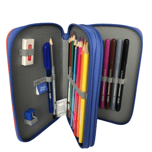 Indhold 29 dele: 10 blyanter, 14 tuscher, 1 blyant, 1 kuglepen, 1 viskelæder, 1 blyantspidser, 1 tabel