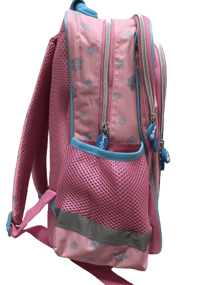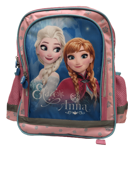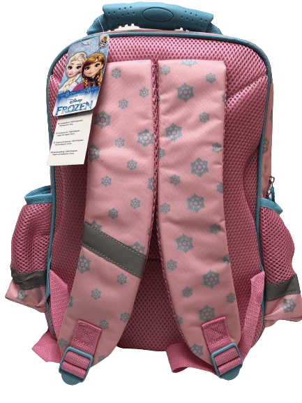 Super lækker og flot skoletaske med fine detaljer. Lyserød med Elsa & Anna motiv. Polstred i ryg og justerbare og polstrede skulderstropper