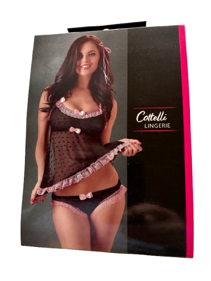 Lækkert Babydoll sæt med trusser i sort med lyserøde kanter