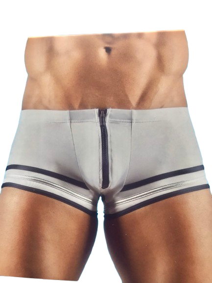 Tætsiddende pants i matroslook med en bred plastik lynlås foran og tre påsyede striber ved benene. Elastisk stoflimmimg.